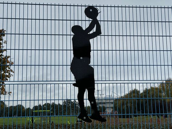 Complete renovation of your MUGA could include our bespoke decorative Michael Jordon life size metal silhouette's