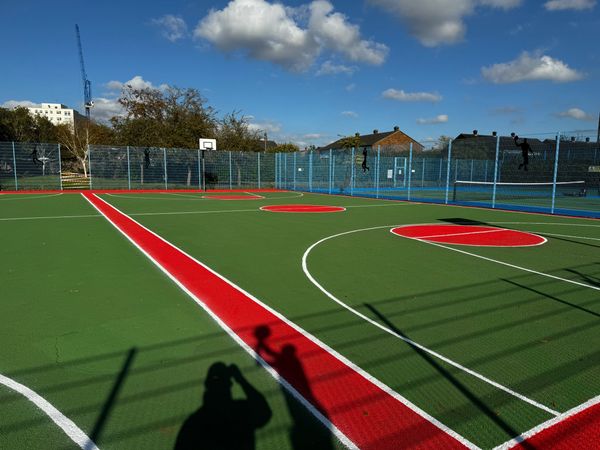 From a basis tarmac surface with no character, to a vibrant fun standout ball court in Barking