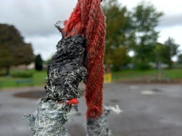 Playground ropes are wrapped around a twisted steel core for strength safety reasons. If the outer rope is worn or damaged, the steel becomes visible and open to splinter and break causing severe injury. We can repair all types of rope damage from full ropes to small sections repairs using our mobile rope repairs specialist.